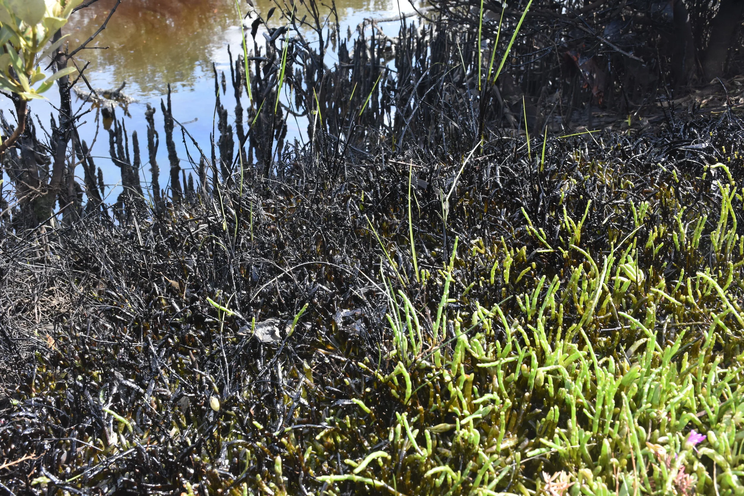 The dark stain is oil which has floated across to Jawbone from the Challis wetlands. There are a number of areas in Jawbone which have been similarly affected.